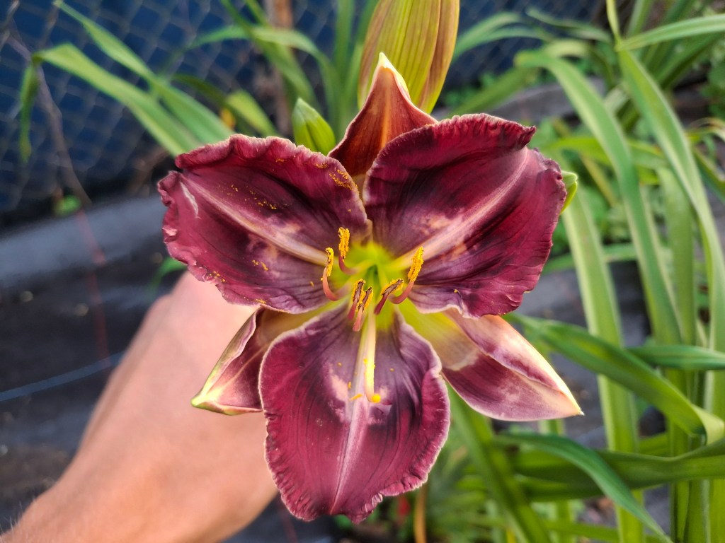 Zur Züchtung von Hemerocallis gibt es im Internet genügend Artikel. Vor allem in den USA existieren unzählige Züchter, welche sich diversen Zuchtzielen widmen. Von riesigen, gerüschten, gezähnten Blüten mit grünem Schlund, applikativem Auge und mehreren Farbnuancen pro Blüte bis hin zur zierlichen Miniatursorte, welche kaum kniehoch wird, ist alles vorhanden. Eine unserer Zuchtlinien baut auf der fantastischen Sorte „From China with Love“ (diploid, dormant, Dr. Thomas Tamberg, 2006) auf. Diese Pflanze bringt Blütenstände hervor, welche extrem reich verzweigt sind und sich mit Blüten bedecken. Freudiger Weise vererbt sie diese Eigenschaft dominant. Bei der Kreuzung mit anderen diploiden Sorten wie „Phill Warbasse“ (diploid, dormant, George Doorakian, 2012) entstanden zahlreiche, reichblütige Sämlinge mit hohen, kräftigen Blütenstielen. Viele dieser Sämlinge haben über 50 Knospen pro Blütenstiel und damit teilweise 300 Knospen an einem 2-jährigen Horst. Interessanterweise besitzen viele Sämlinge den grünen Schlund der Vatersorte sowie die helle Mittellinie auf den Petalen.