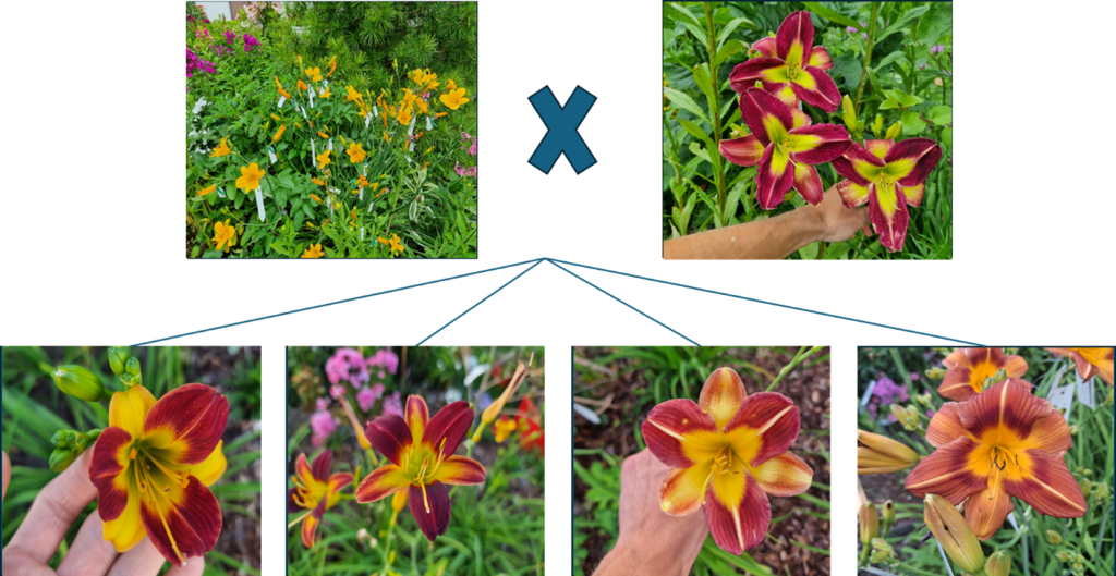 Zum „Appetit anregen“ findet sich hier noch ein Beispiel für die Ergebnisse der eigenen Kreuzungen aus „Printmaker“ (diploid, evergreen, Ludlow Lambertson, 2012) und „Phill Warbasse“ (diploid, dormant, George Doorakian, 2012). Viel Spaß beim Ausprobieren!